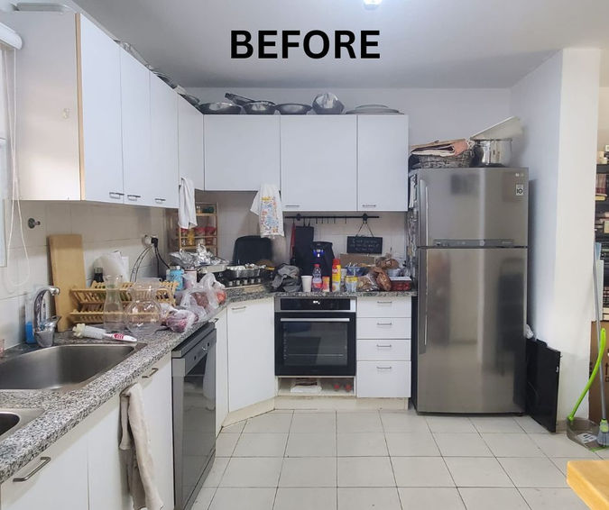 This wonderful family made aliyah to a home that hadn’t been updated in nearly 30 years. Their small kitchen presented several challenges: three separate entrances (yes - three!), structural walls that limited flexibility, and very little storage or counter space.