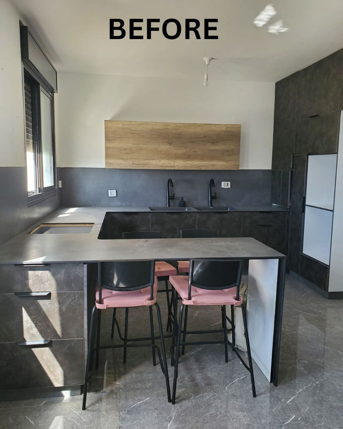 Thanks to the clients’ detailed completion of my pre-design kitchen questionnaire, the space is fully tailored to their needs and preferences, including a custom wine rack and the wife’s top request: stainless steel countertops, a rare feature in Israeli homes.